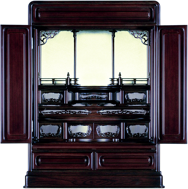 伝統と歴史の深い唐木仏壇、金仏壇はもちろん、現代のインテリアに自然になじむモダン仏壇(家具調仏壇)や、設置場所に困らないミニ仏壇など、様々な種類のお仏壇を豊富に取り揃えています。