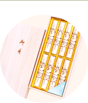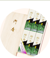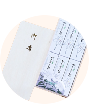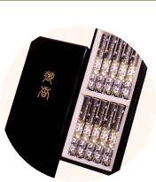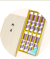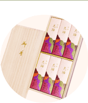 贈答用線香にも様々な種類があり、ケースも贈り物にふさわしい紙箱・桐箱・塗箱と多種多様に取りそろえてございます。