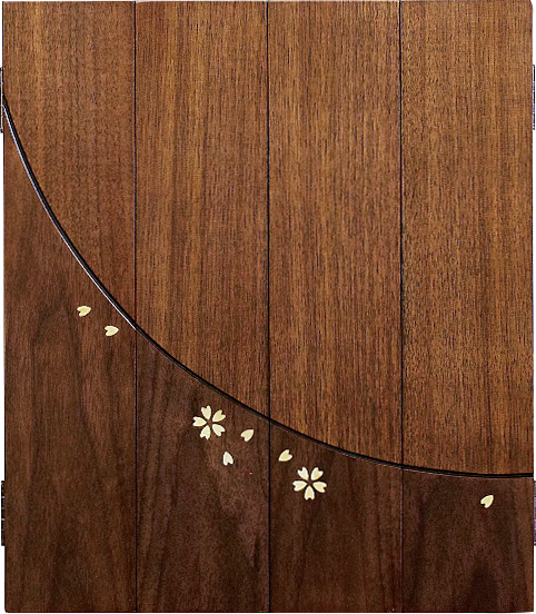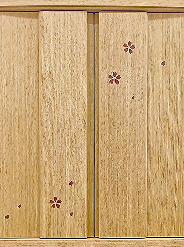 桜の象嵌が黒檀の扉に優美なアクセントを添えます